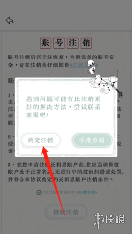在弹出的窗口中选择左侧的“确定注销”按钮。