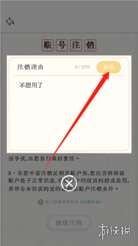 最后填写注销理由,点击“提交”按钮,就能成功注销账号了。