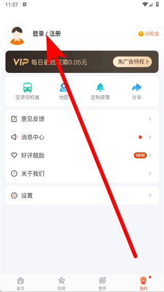 在个人页面,点击登录注册。