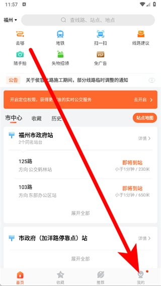 打开掌上公交,点击底部我的。