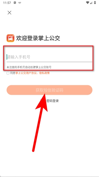 在登录页面,输入手机号码并勾选相关协议后,点击“获取短信验证码”按钮。
