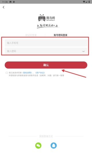 在登录界面,选用账号密码登录的方式,填写手机号与密码。