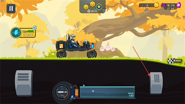 点击右下角的踏板,或者长按它,都能让车辆启动并前进;而左下角的踏板则是用来控制车辆刹车的。