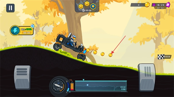 在确保车辆平稳行驶的同时,还能拾取沿途的金币与电池。