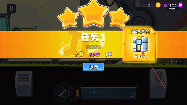 首次通过关卡,可以点击领取首次通关奖励宝箱。