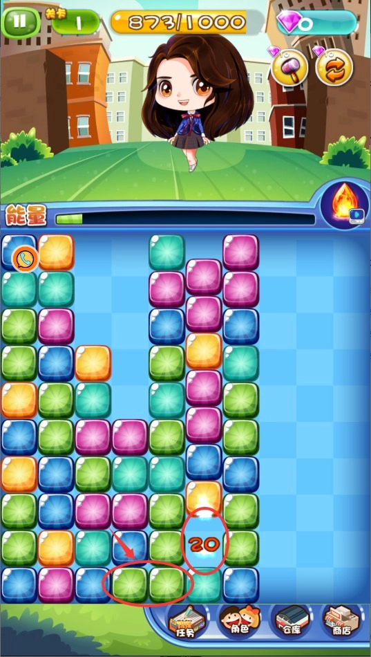 寻找相邻的同色宝石,只要有两个或两个以上连在一起就能点击消除,连续进行消除操作还能得到额外的分数加成以及特殊道具奖励。