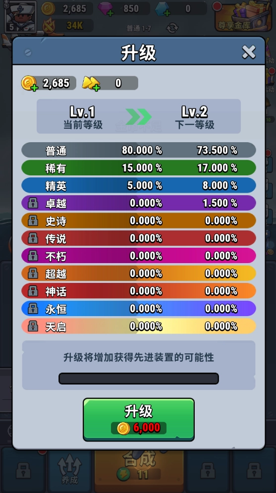 合成的装备品质与下方等级相关,提升等级能提高装备品质,但这一过程需要消耗大量金币。