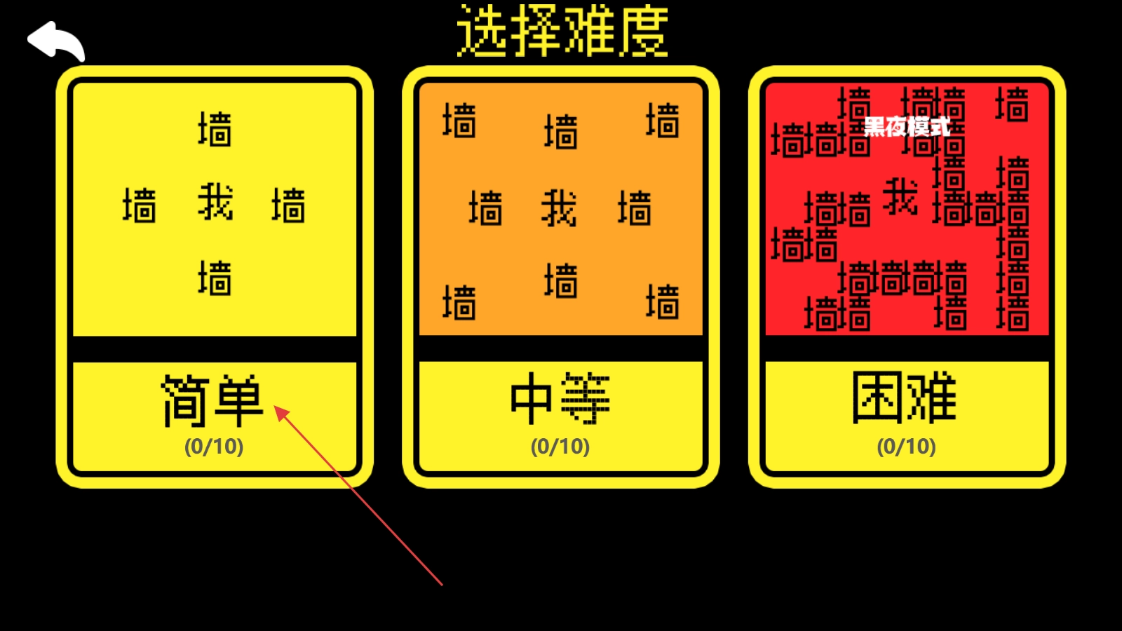 设有简单、中等、困难三个难度档位,不同难度对应不同复杂度的迷宫布局,困难模式还带有黑夜视觉效果。