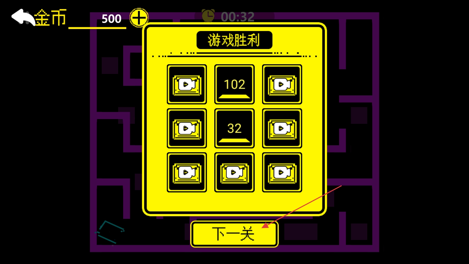 成功通关后会弹出奖励界面,点击界面中的下一关按钮,即可解锁并进入新的迷宫关卡继续挑战。