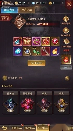 2、每个BOSS均设定了转生次数的限制,玩家必须完成对应的转生任务,才能解锁并挑战相应的BOSS。