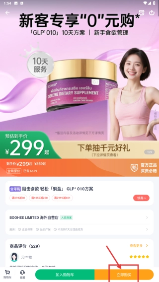 在商品的详情页面,找到并点击“立即购买”按钮,即可开展商品的购买流程。