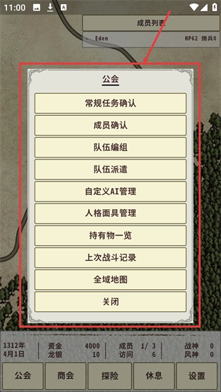 按照提示打开【公会菜单】,找到队伍编组的选项,通过招募或者添加成员的方式,组建起专属于自己的战斗队伍,以此为接下来的任务做好准备。