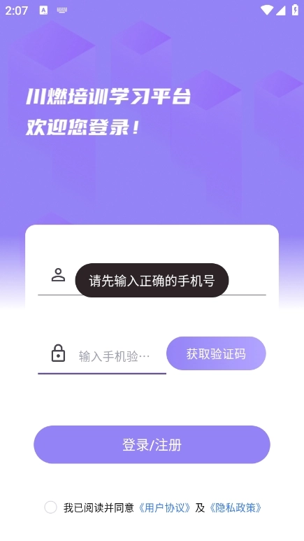 进入并阅读同意川燃培训的用户协议。
