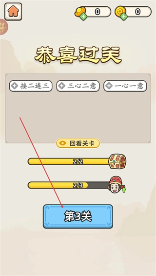 通关后点击第3关,进入下一关继续游戏。