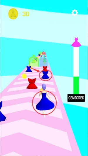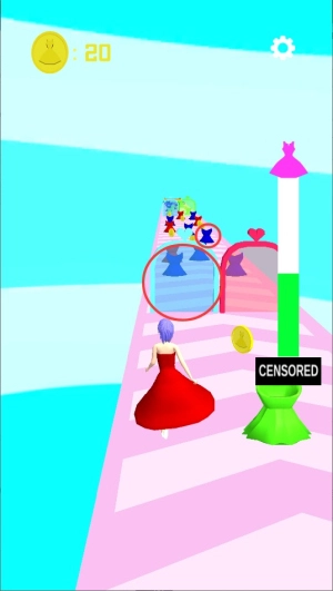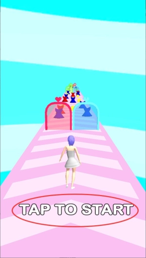 游戏启动后角色会自动向前奔跑,玩家要留意前方出现的服装颜色,迅速点击屏幕来让角色换上同色系的服饰,以此完成颜色匹配。