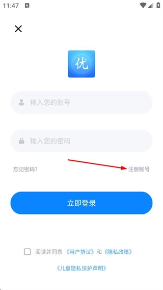 在登录页面,点击注册账号,进入注册账号页面。