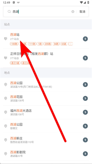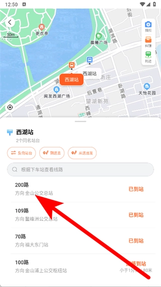 进入站点页面后,点击要查询的公交线路。