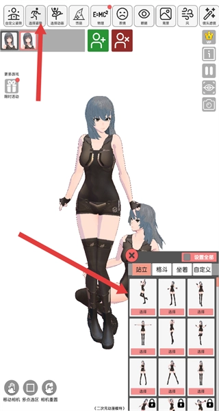 在添加完新角色后,点击顶部的“选择姿势”按钮,接着在姿势列表里为目标角色挑选合适的姿势。