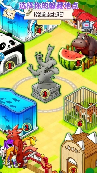 要是能成功藏到安全地点,一直等到追击结束,这一局就算胜利了。要是被变异动物发现了,可以试着重新找个新的躲藏地方,或者用跳过关卡的功能。