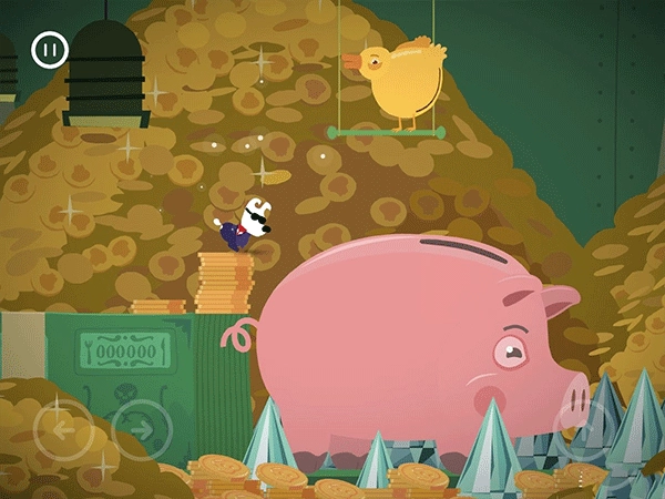 点击小鸡就能让它下金币,只有让金币精准落入小猪的肚子里,才能继续前进。