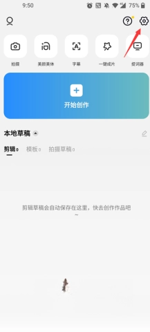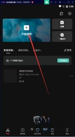打开剪映海外版,点击开始创作此次视频。
