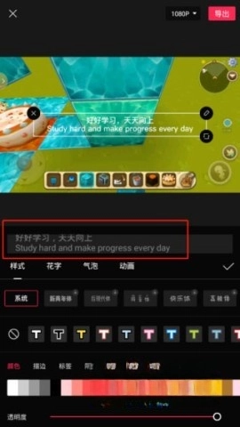 完成后设置字幕效果,最后进行导出。