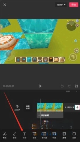 在界面下方找到“文字”功能并点击。