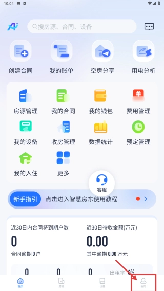 打开租房管理类应用,点击底部的“我的”选项,进入个人中心页面。
