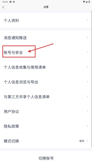 进入设置界面后,找到并点击“账号与安全”选项,即可进入对应的账号与安全页面。