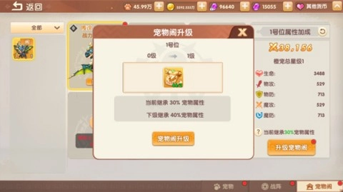 宠物阁升级:使用特定道具,能显著增强宠物阁的属性加成效果,助力你的角色提升战斗力。