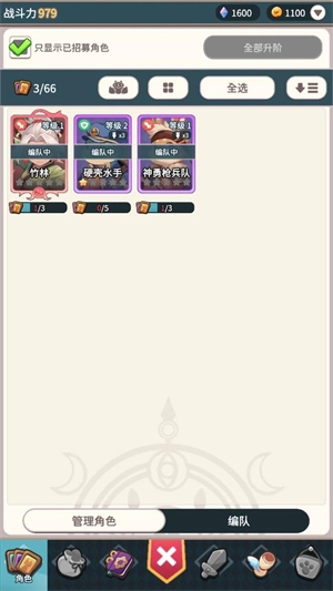 点击下方的角色按钮即可查看已拥有的角色,你还能对这些角色进行强化与升阶操作。