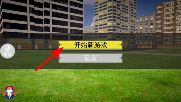 在启动界面点击“开始新游戏”按钮,即可进入城市射击冒险的核心玩法场景,正式开启战斗流程。