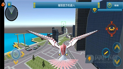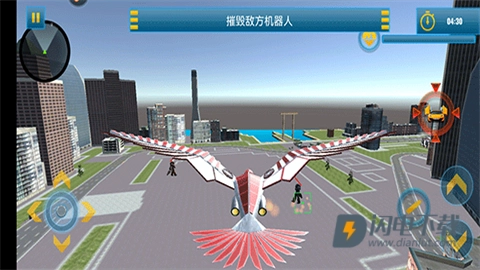 玩家要按照左上角地图的提示,准确找到敌方机器人的位置,然后操控机甲鹰飞到敌方机器人的附近区域。