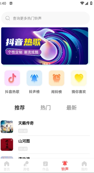 点击页面下方的“铃声”按钮,就能着手设置你心仪的手机铃声了。