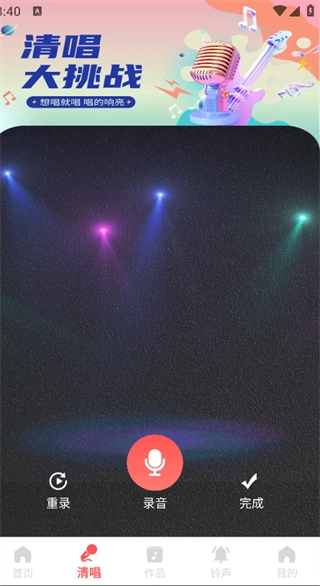点击页面下方的“清唱”按钮,就能开启歌声录制功能,记录下自己的演唱。