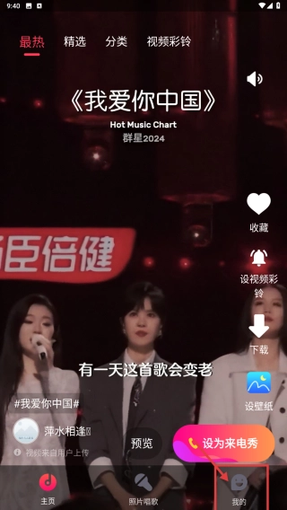 打开来电秀类应用,点击底部的“我的”选项,进入个人中心页面。