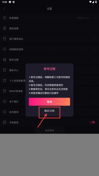 当账号注销确认弹窗出现时,点击“确定注销”按钮,即可提交账号注销申请。