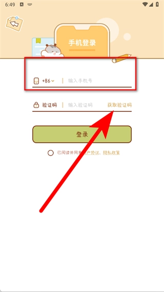 在手机登录页面,输入手机号,点击获取验证码。