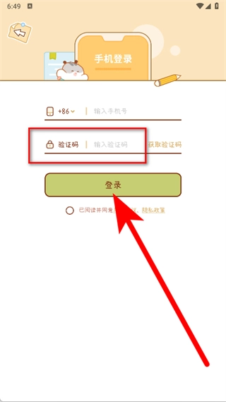 输入收到的验证码,点击登录按钮,完成登录。