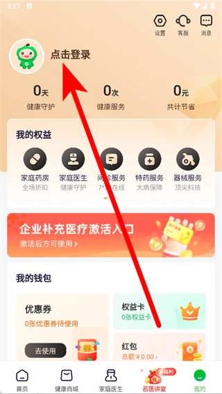 打开荷叶健康,点击底部导航栏最右侧的我的。