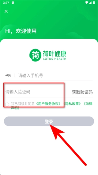 把收到的验证码填入验证码输入框,勾选相关选项后,点击登录按钮,即可完成注册登录流程。