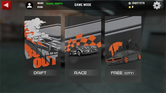游戏中有漂移、竞速、自由三种模式,选好模式后可以选择不同的比赛类型。