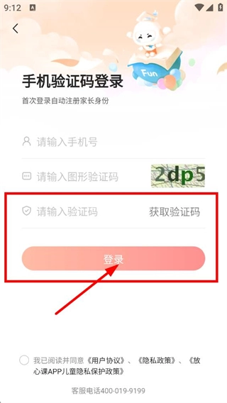 获取验证码并输入完毕后,点击登录按钮,即可完成账号登录的操作。