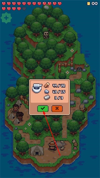 点击资源或建筑选项,就能利用收集到的资源来建造工具、房屋之类的设施。