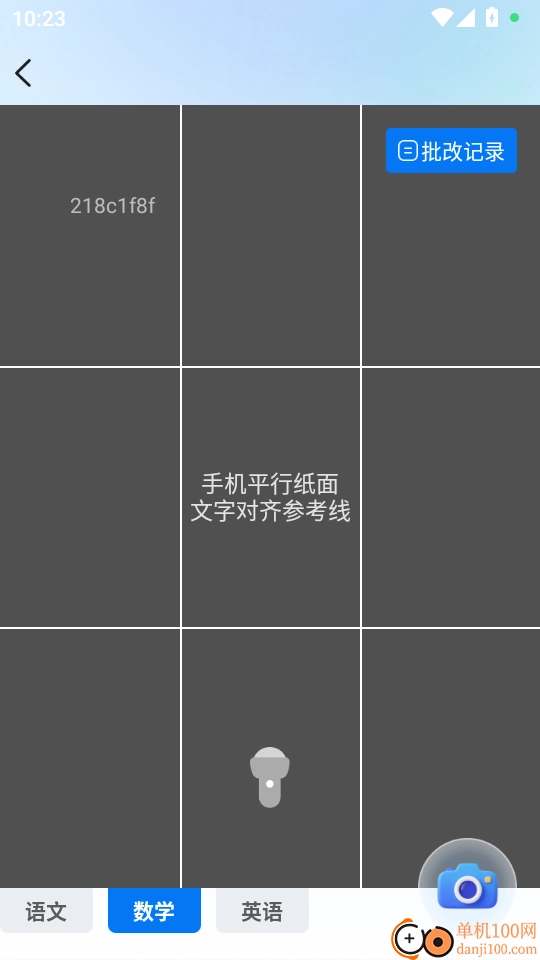 接着进入作业批改的拍照识别界面,找到右上角的“批改记录”按钮并点击进入