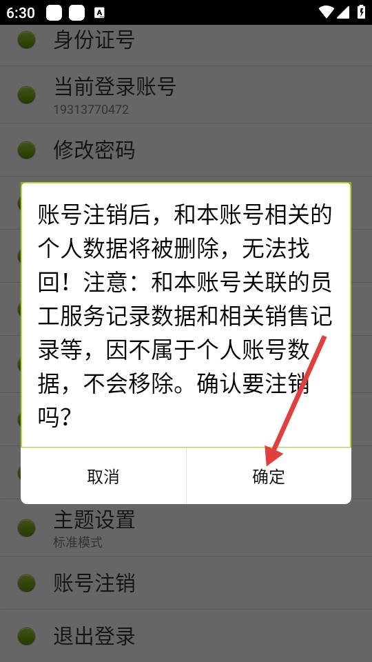 在账号注销确认提示框里,点击【确定】按钮就能够完成账号注销的操作。