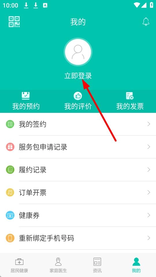 在“我的”页面中,点击【立即登录】按钮即可执行登录操作。