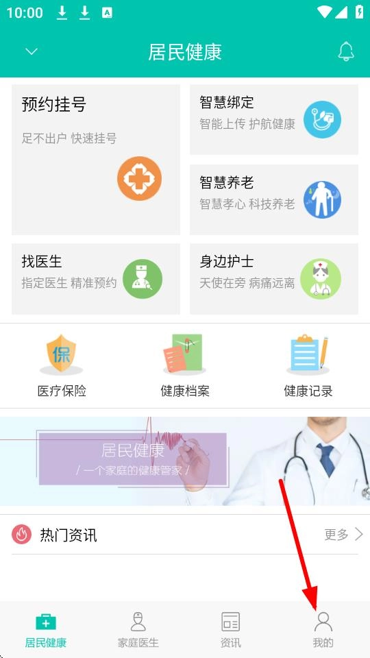 在居民健康主页面,点击【我的】选项,即可进入个人中心页面。