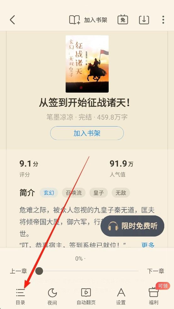 然后点击【目录】选择章节开始阅读