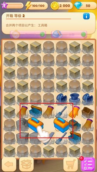 在合并界面中,把相同的物品进行合并,就能生成更高级的道具,这些道具可用于别墅的装修。